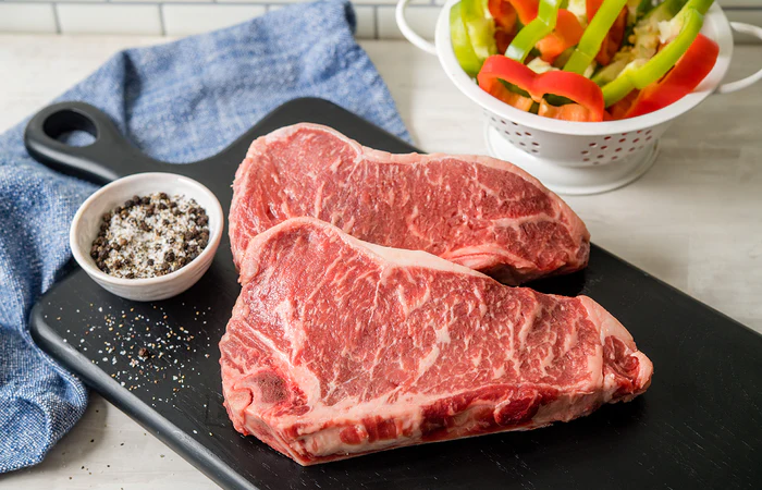 The Prime Porterhouse steak combines two cuts in one, making it ideal for sharing. The filet side ensures melt-in-your-mouth tenderness, while the striploin delivers a bold, beefy flavor. With perfect marbling throughout, this cut excels when broiled or grilled.